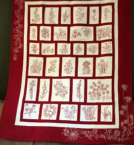 Day 5 #! This is red work flowers and hand quilting. It took longer to get around to doing this than it took to do it.