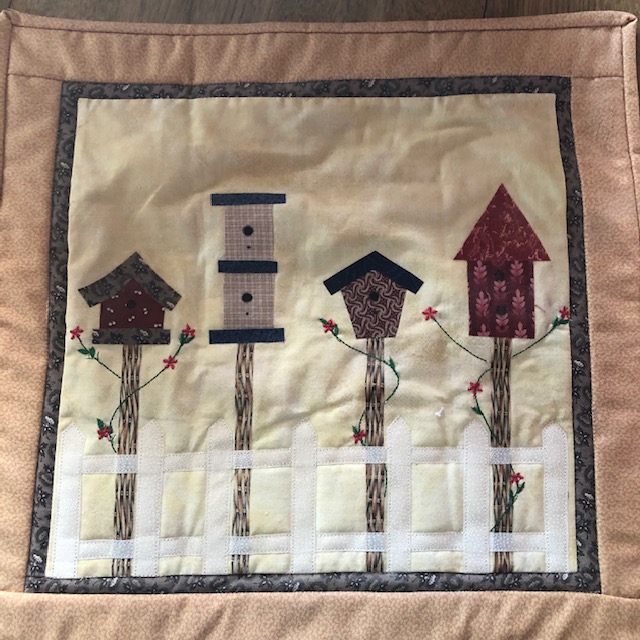 Day 10 Basket and Butterflies. This quilt has won several blue ribbons, a best hand quilting ribbon at VQF, and viewers’ choice at Maine Quilts 2019. It is retired from shows. It is hand appliqued and hand stipple quilted.