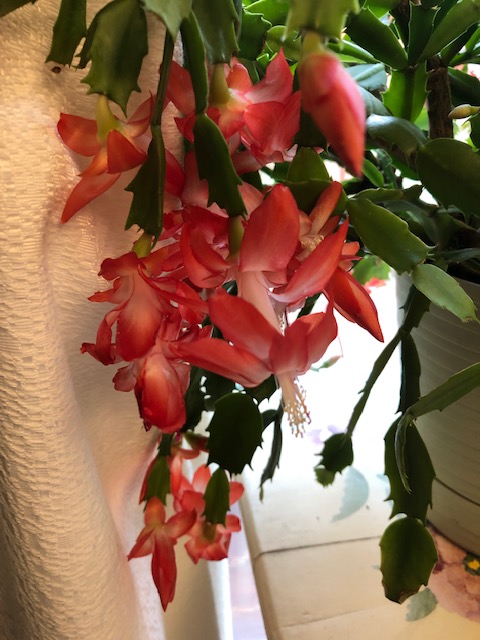 Is it Christmas yet? My Christmas cactus seem to think so. Two out of three are blossoming. The third one isn’t budded. Maybe, it will wait until December.