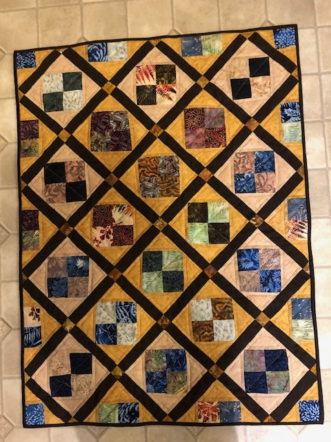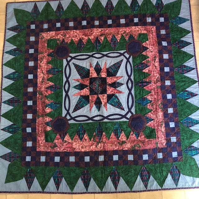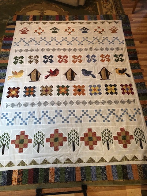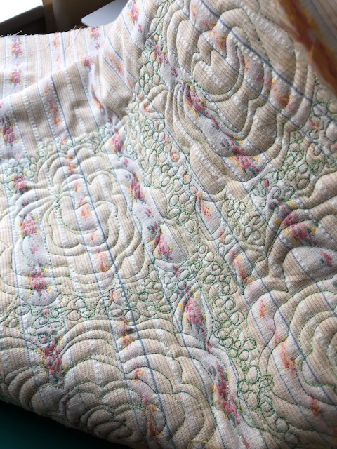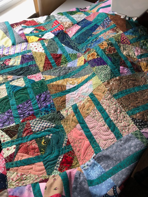 The quilt is busy so the quilting doesn’t show on the front. It is much nicer on the back.