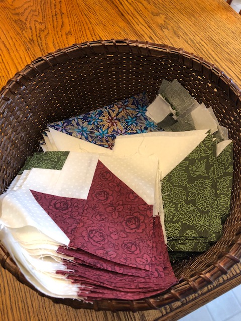 I am up to date on the Morehead Mystery quilt. The clues come once a month and although there is a lot of piecing to do, it can be finished in short time. Then it goes into the basket to wait for the first Thursday of the next month.