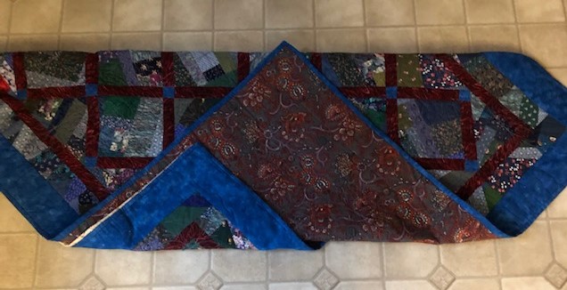 The backing on this quilt is a piece that I received as part of a prize at the Maine Quilt show two years ago.