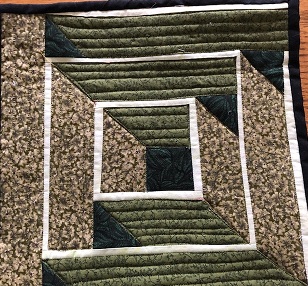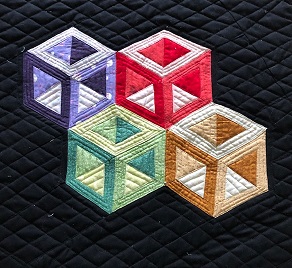May’s mini 3D illusion quilt is finished. These little quilts are so much fun. They finish up fast, but don’t do much as stash busters.