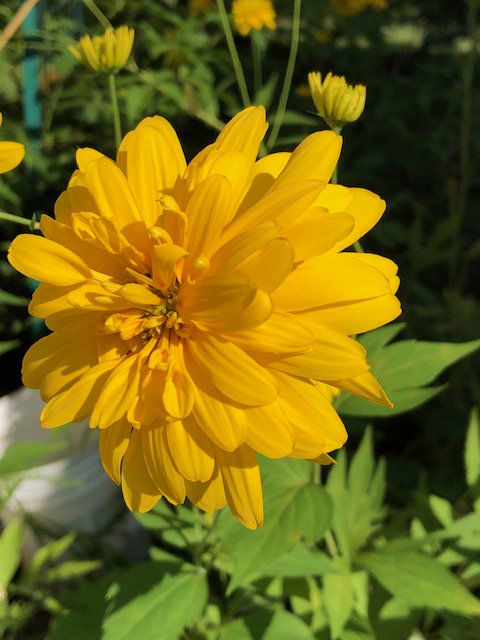The Maximillian Sunflowers are in blossom. They are perennials. Somehow, they self seed all over the place and like to be in the front row. They are so pretty. I just let them go where they want to go.
