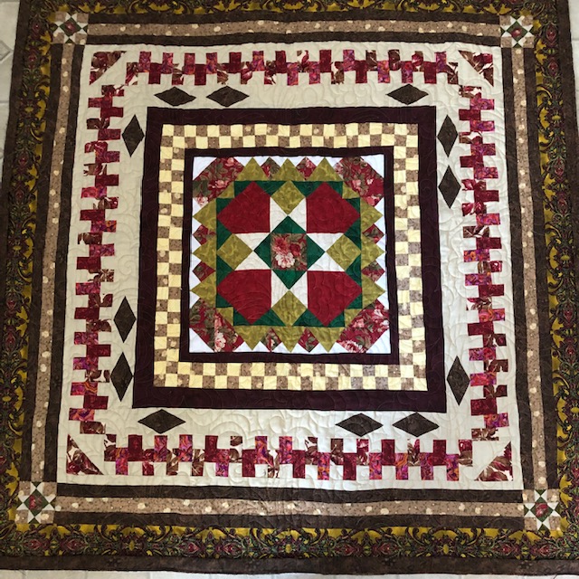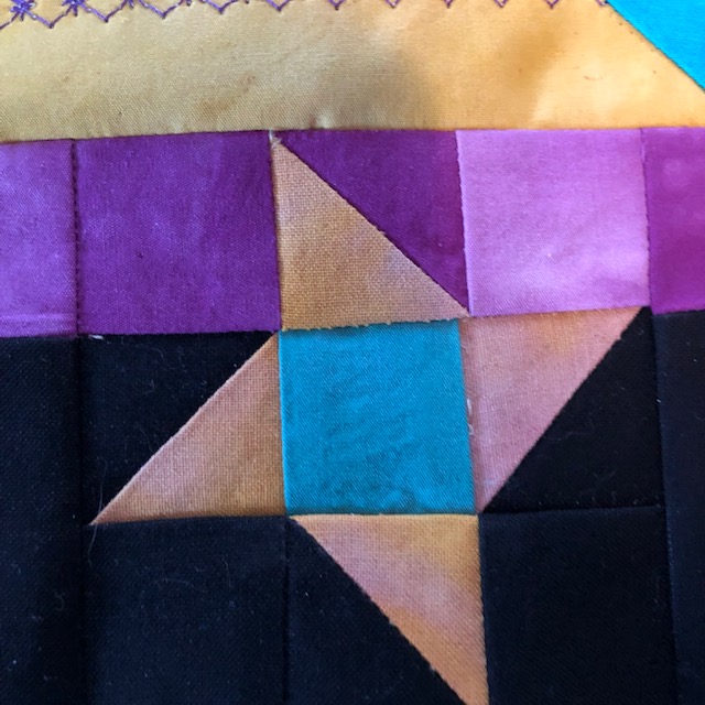 Another quilt back from the long arm quilter is a Stay-at-home round robin. The quilting made it come alive.