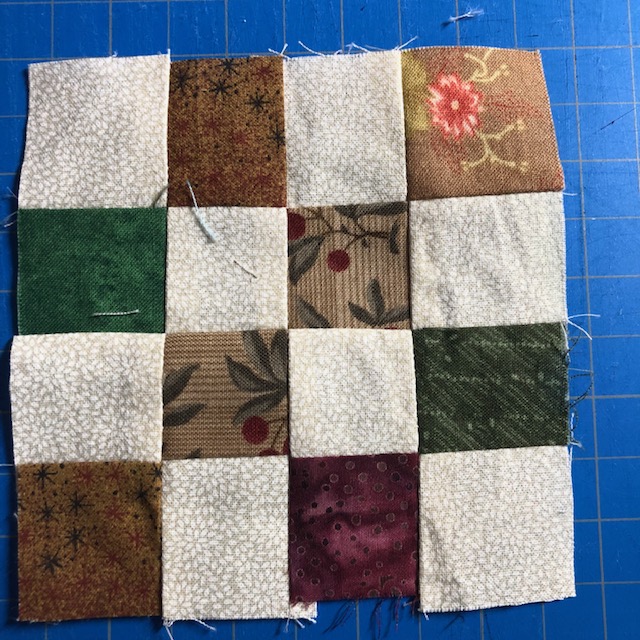 This is just a small image of the mounds of small squares. I sewed two together. Then, two twos for a four patch.