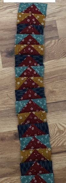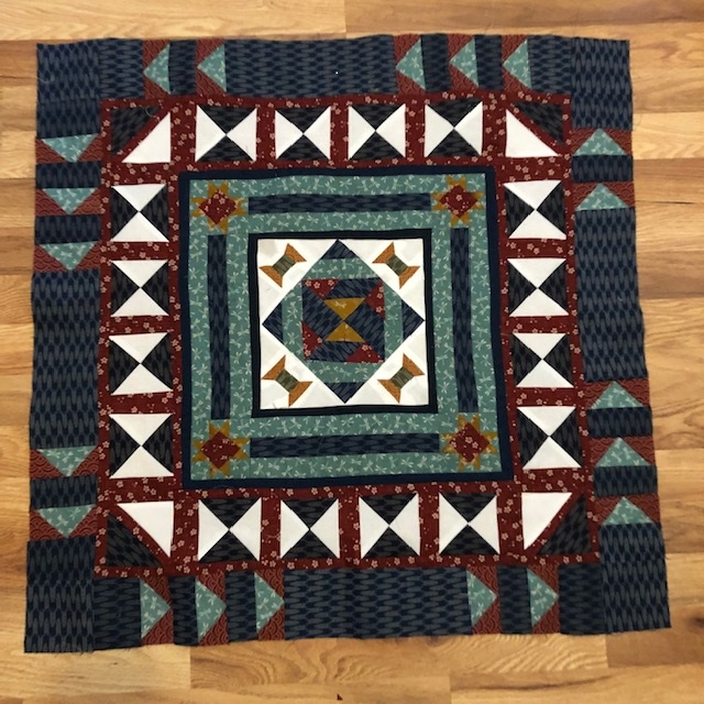 When I laid it on the quilt, it was too busy. Four rows were made. Should I add them even though I didn’t like them, or should I go another way? I decided to cut my losses. I can use the four rows of geese in another project at a later date. I could even piece them to the back of the quilt.