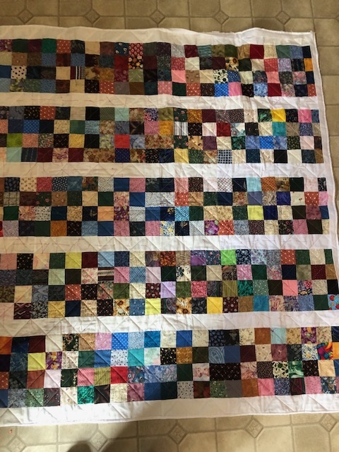 I’ve been sewing the binding on two community quilts.