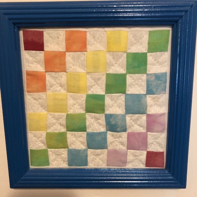 Thia is a few of the little quilts. I still have to gather some of the supplies to put the quilts into the frames. Also, the courage to do woodworking. I may find another passion. Or I will decide to never do that again. Most of the frame pieces are painted white, but some are natural wood. I can paint them to coordinate with the quilt.