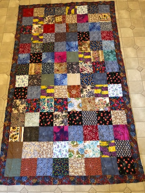 Amazingly, the quilt top was quilted and ready for binding. The binding strips are cut. Another day, I will sew them together and press. If I have enough energy, I’ll sew the binding on the quilt. If not, I’ll do it another day. As long as I do a little bit each day, I will finish something eventually.