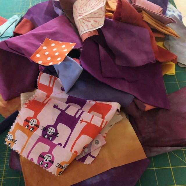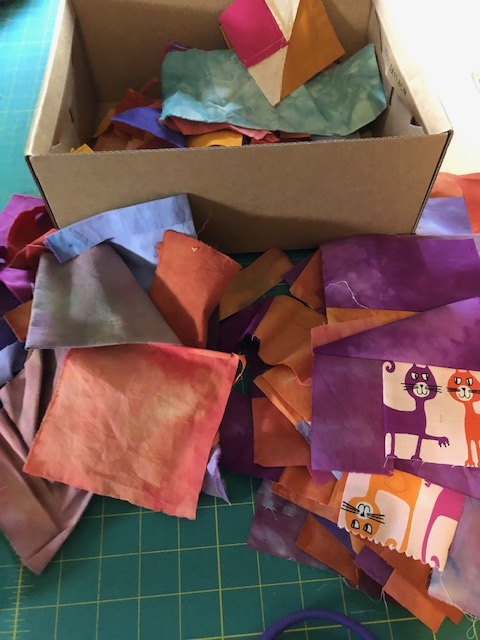I have also sewed the binding on two quilts that came back from the long arm quilter. They were made with the batch of quilts that I made to use up the Japanese fabric. Thankfully, there are just scraps of this fabric left in the Mile A Minute bin.