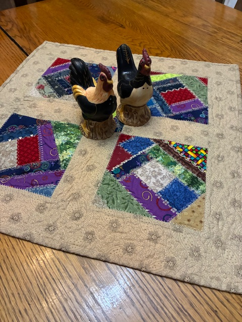 Lots of very nice pieces. I like the little table topper and see how its design will make a good bed quilt.