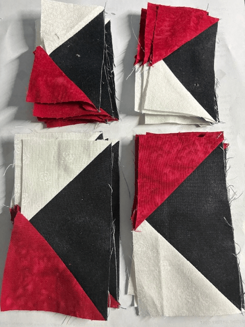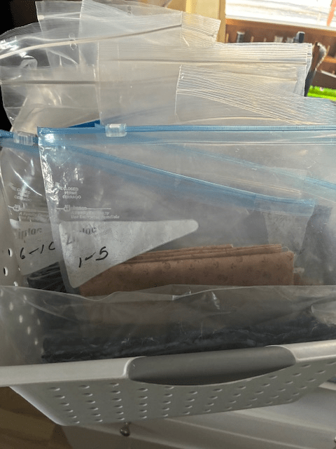 It’s the first of the year and a perfect time to make another one for 2026. I chose 21 different fabrics and put them in 21 labeled bags. The bags were marked in 5-degree increments.