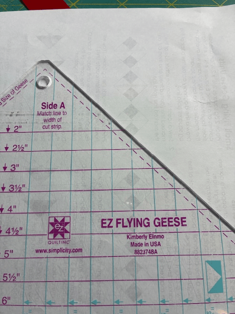The geese are made with the Kimberly Einmo flying geese ruler. It’s great for making one goose at a time. Sewing two seams to attach the bird and sky pieces and another one to add it to the row makes this quilt quick and easy even though it takes a whole year. to finish. There’s enough fabric left over to make the middle border.