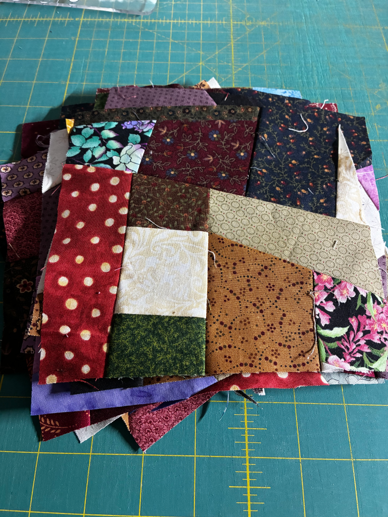 I had said that I would never teach the Mile A Minute quilt block again, so I gave away most of my samples. Another plan not followed through. I am teaching the class one more time. Maybe.